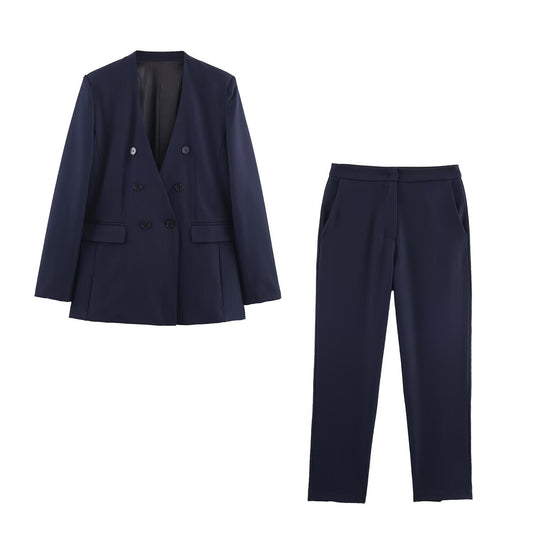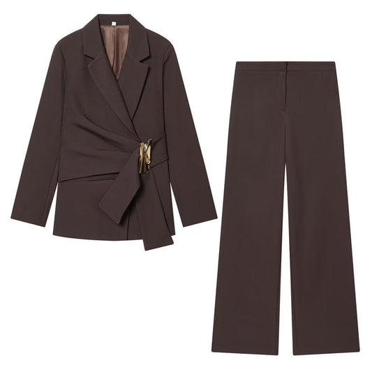 Hollow hem suede jacket+pants set