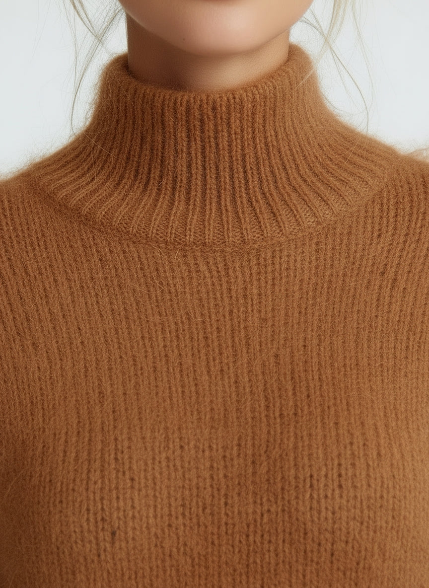 A study in effortless elegance, this oversized mohair knit dress captures the essence of modern femininity. The soft baby blue hue evokes quiet confidence, while the mock neckline and long sleeves offer refined coverage with a contemporary edge.