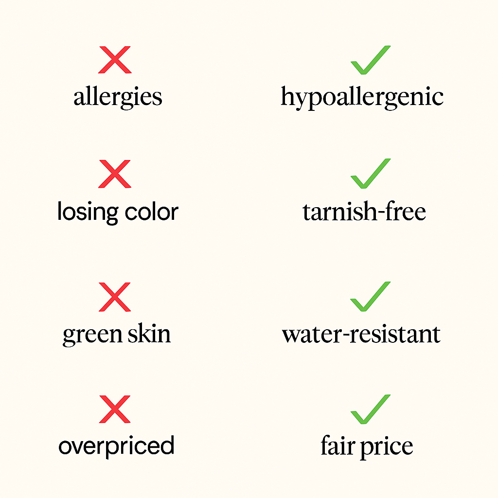 Solea Jewelry • Waterproof • Hypoallergenic • Lifetime Color Warranty.