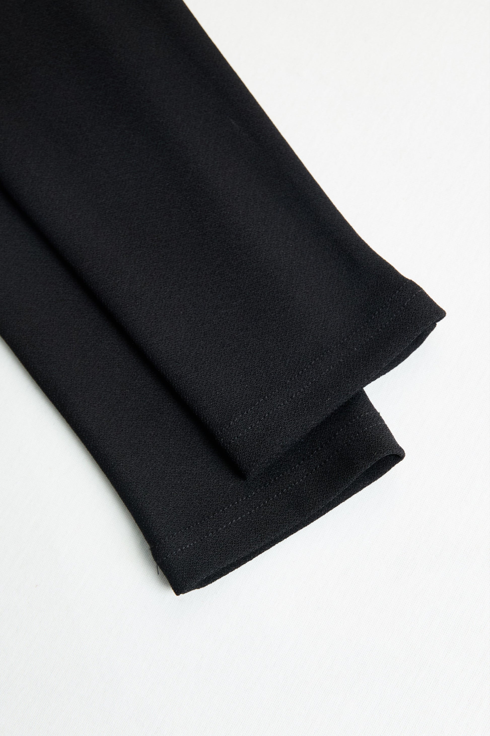 - Material: Premium stretch crepe with satin lapel detail and silver pleated insert