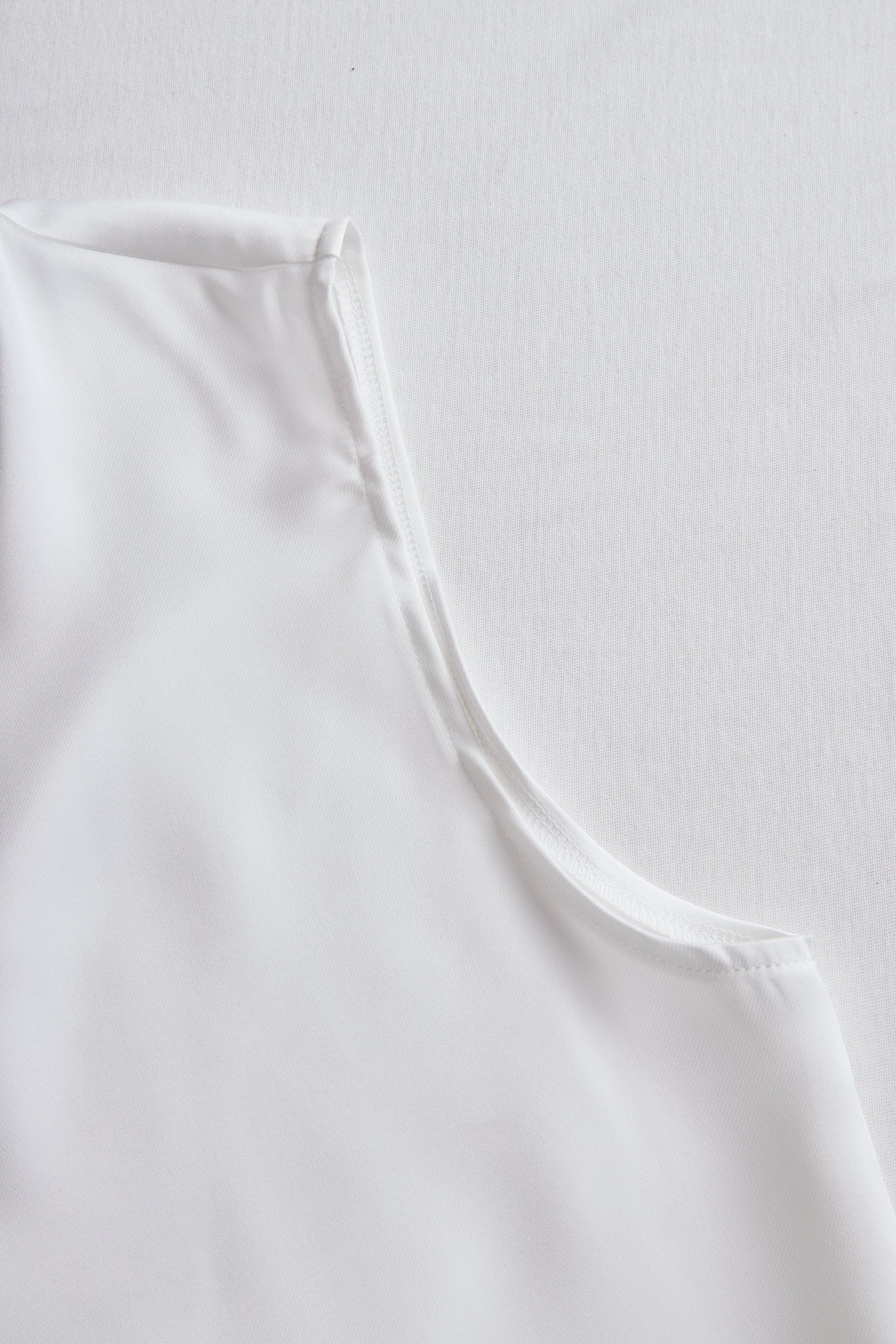 Modern Sleeveless White Blouse with 3D Rose Accents