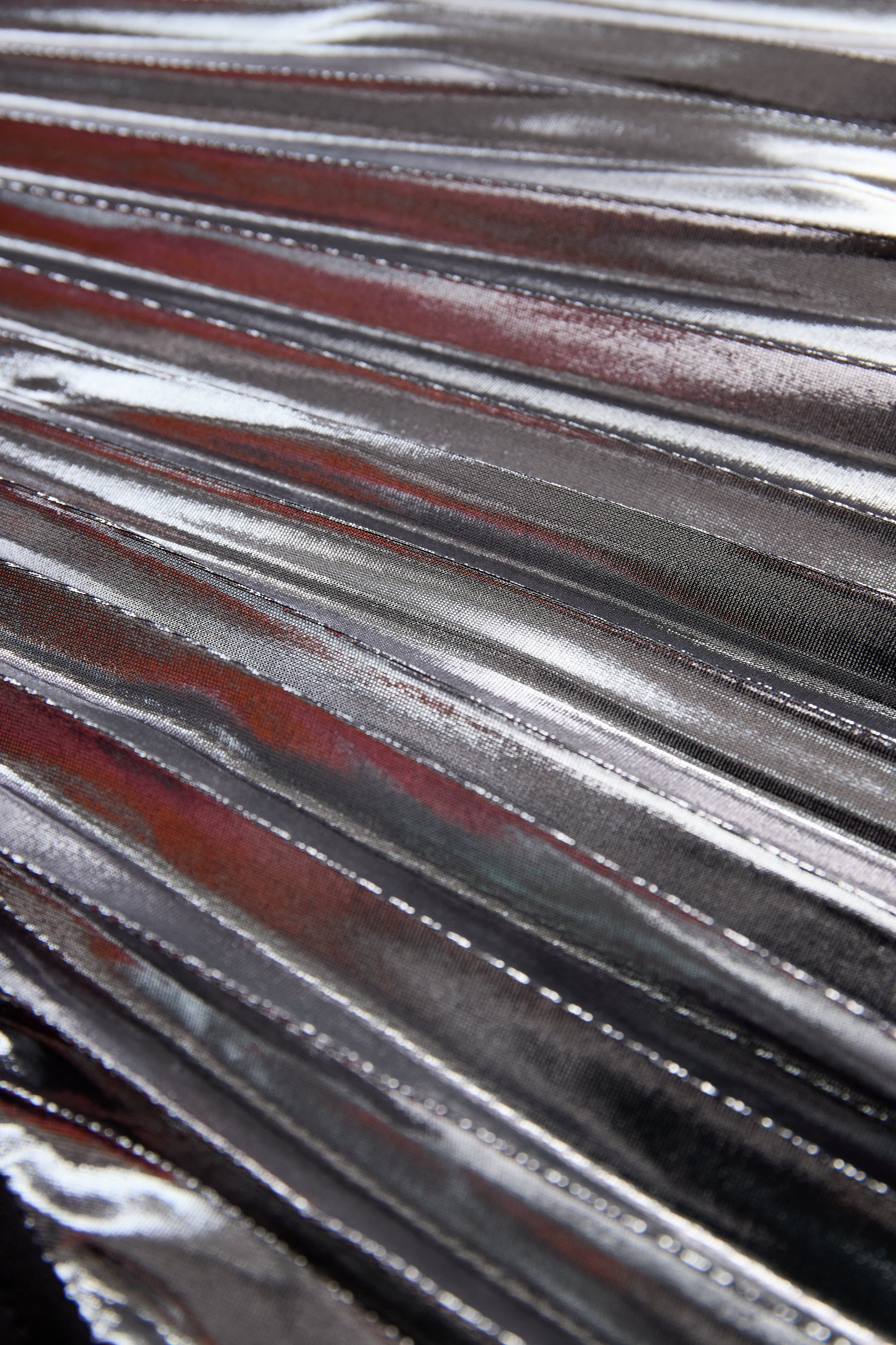 - Material: Structured blend with metallic pleated fabric detailing