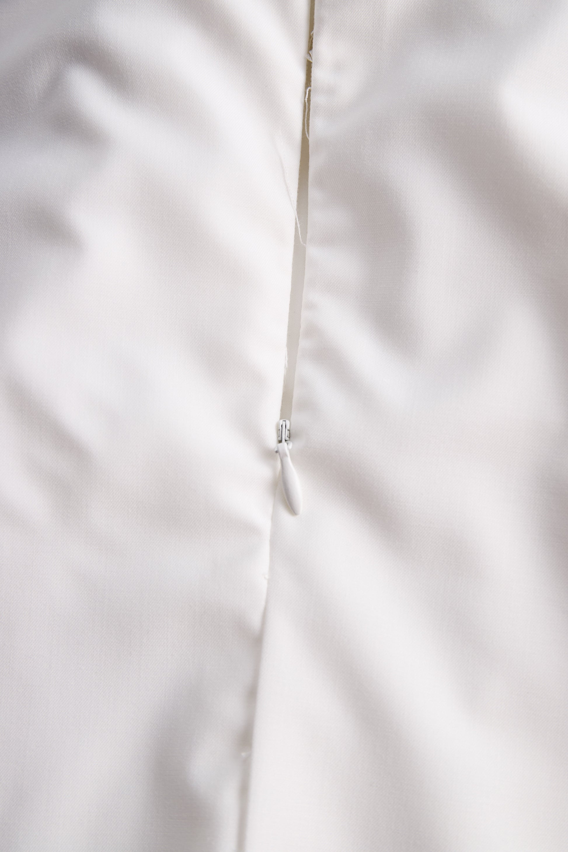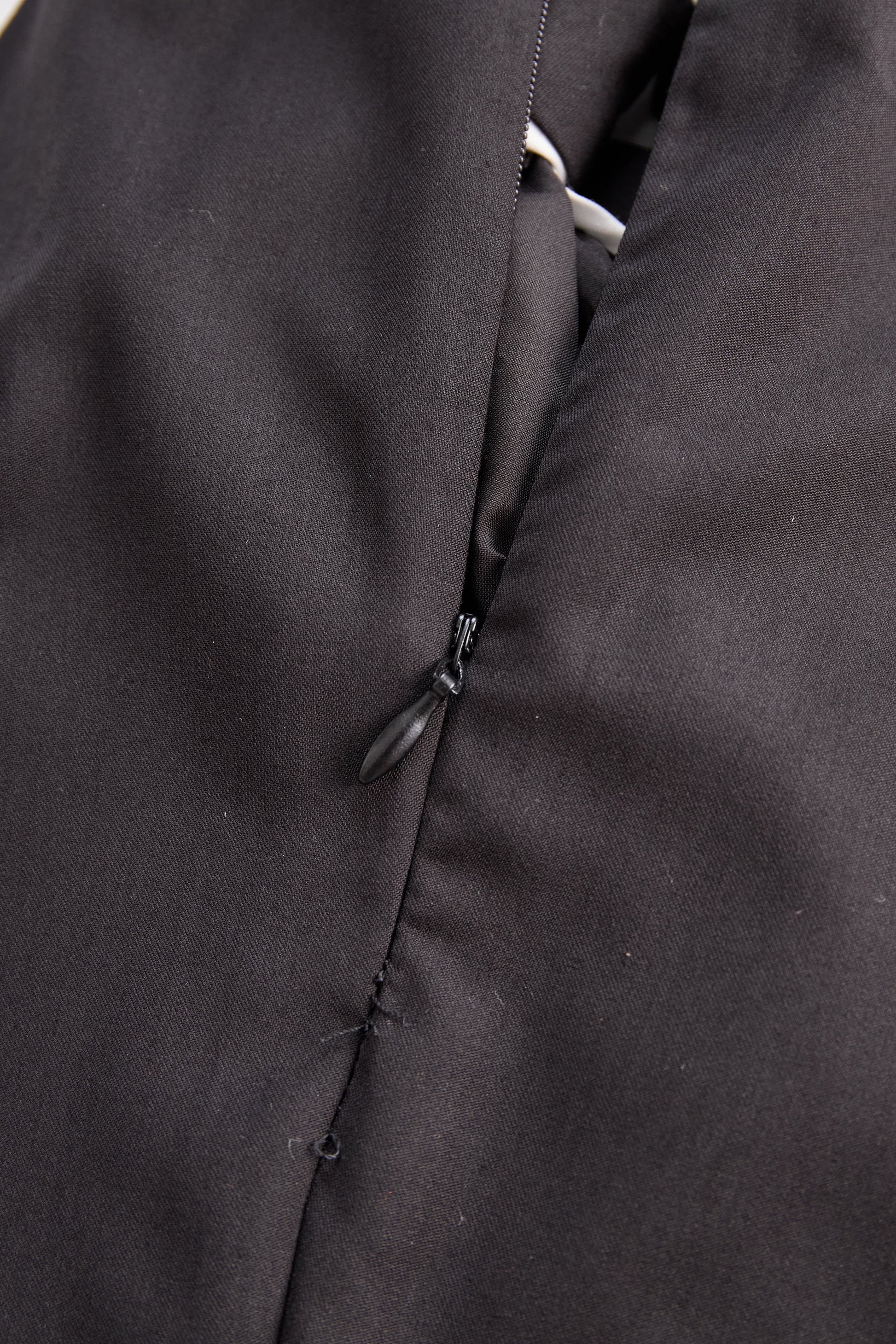 - Design: Halter neck with wide collar, center tie detail, bold black contrast piping