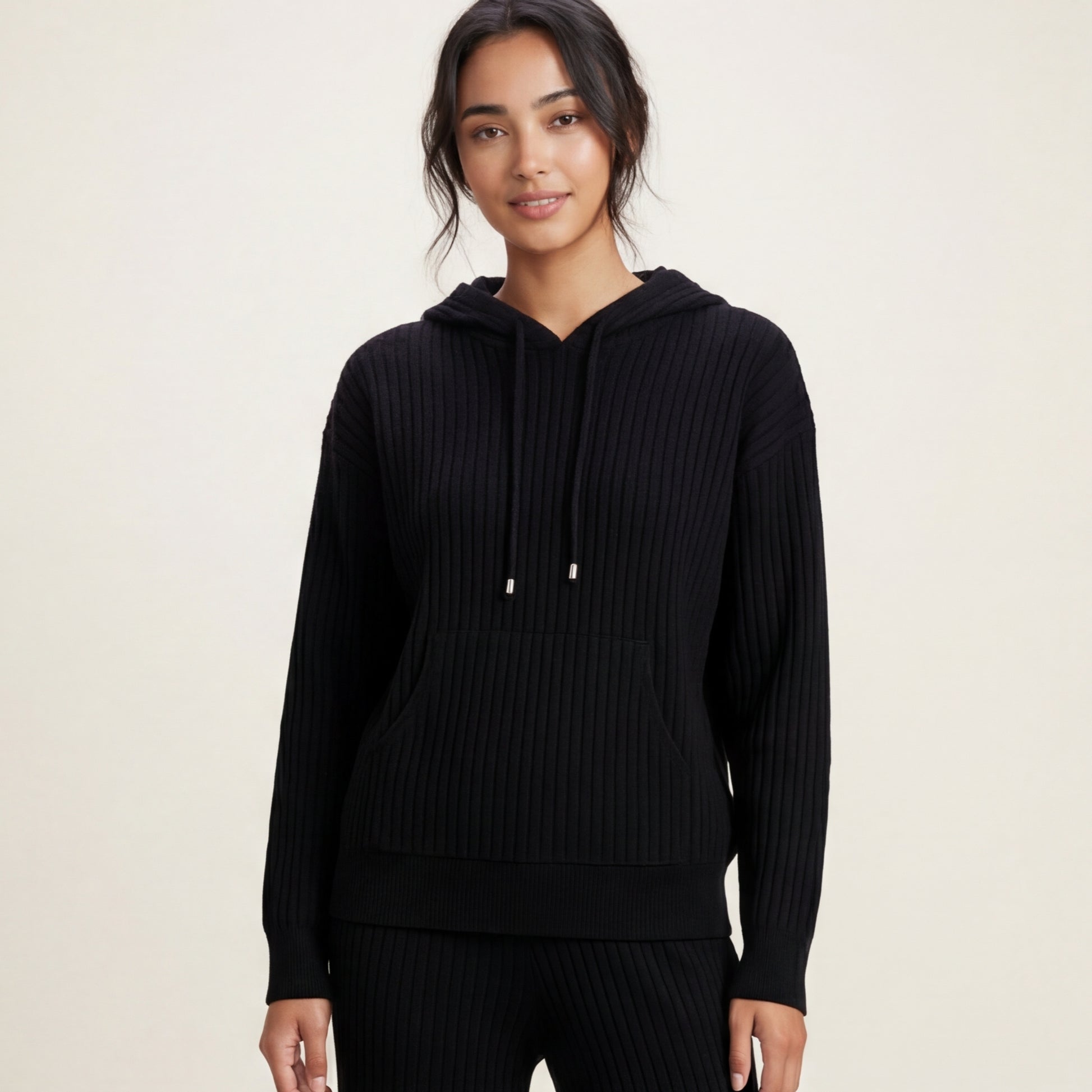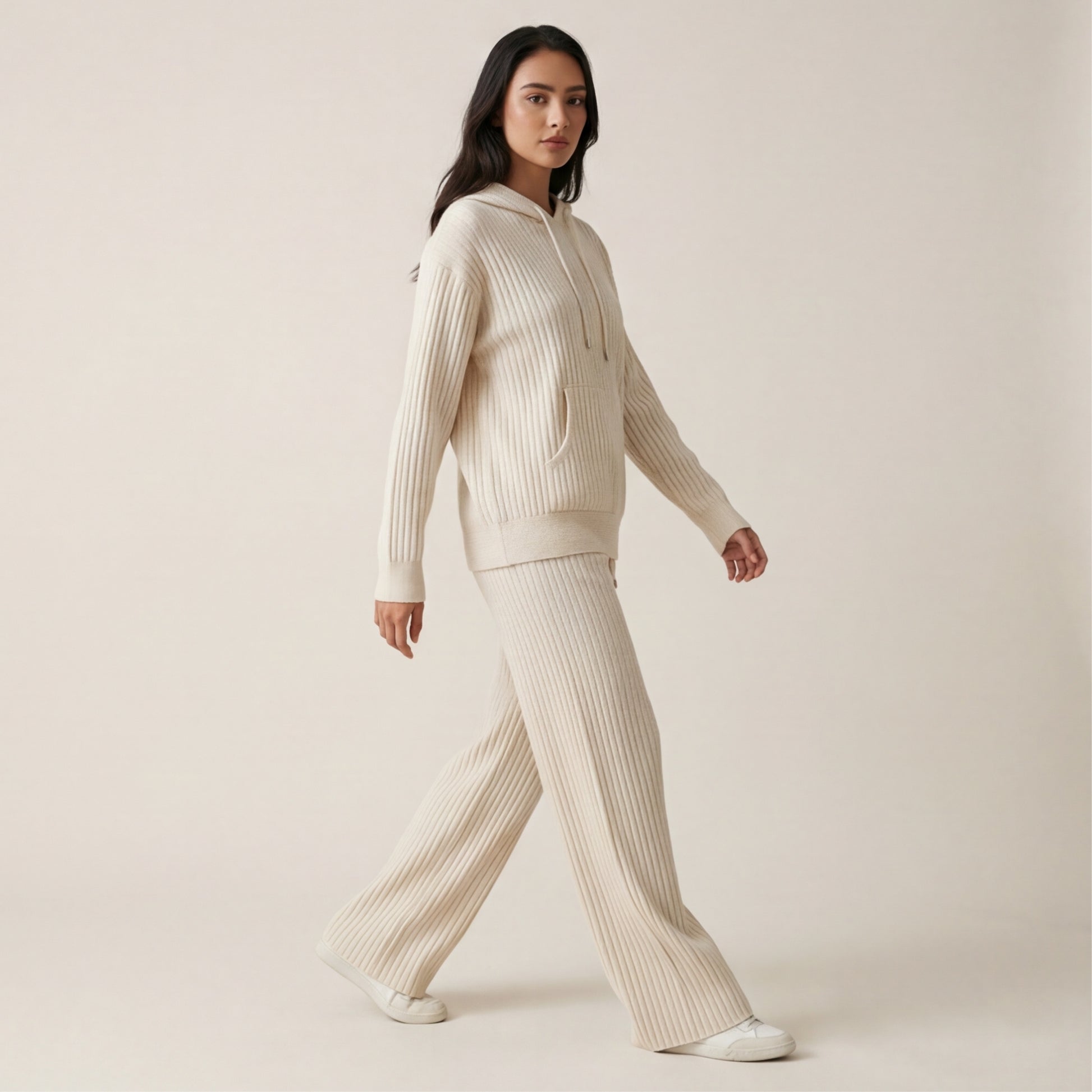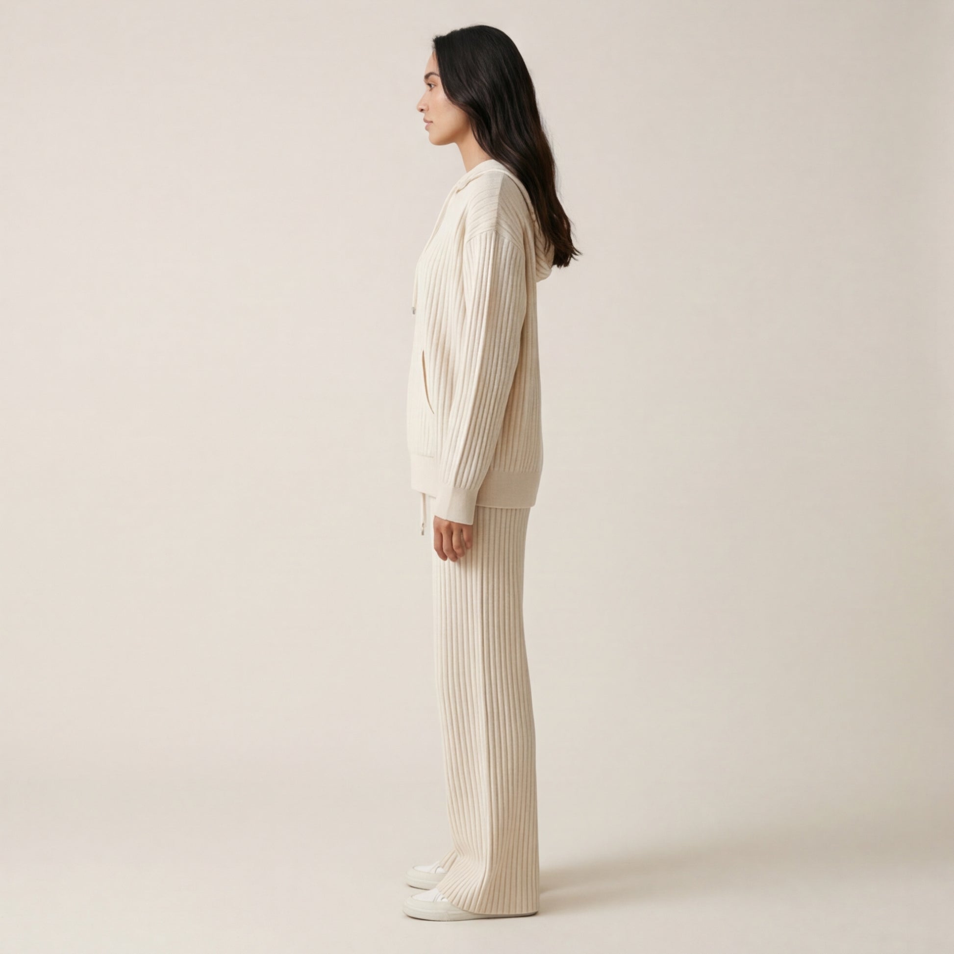 The ribbed texture provides a gentle stretch for a flattering fit, while the lightweight yet cozy fabric makes it perfect for lounging or casual outings. This versatile set includes a drawstring hoodie and relaxed lounge pants, inviting you to embrace comfort as an art form.