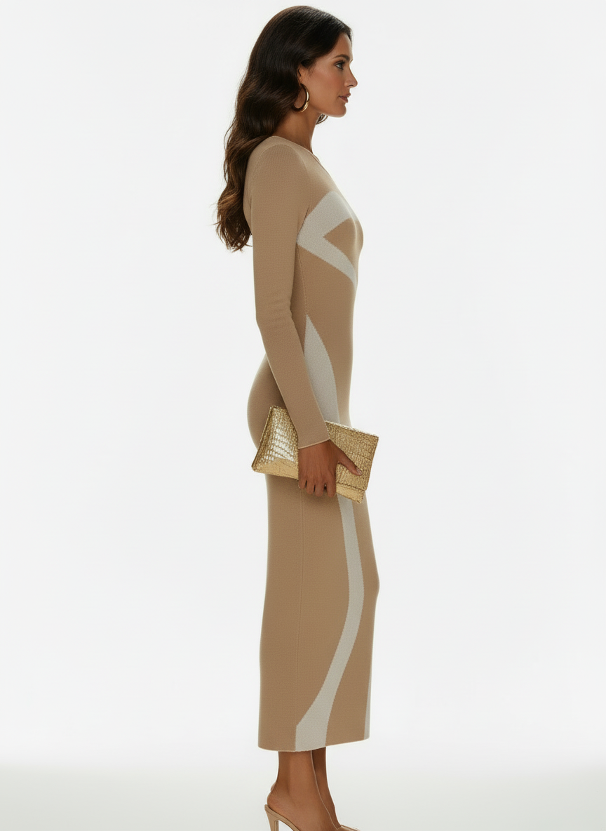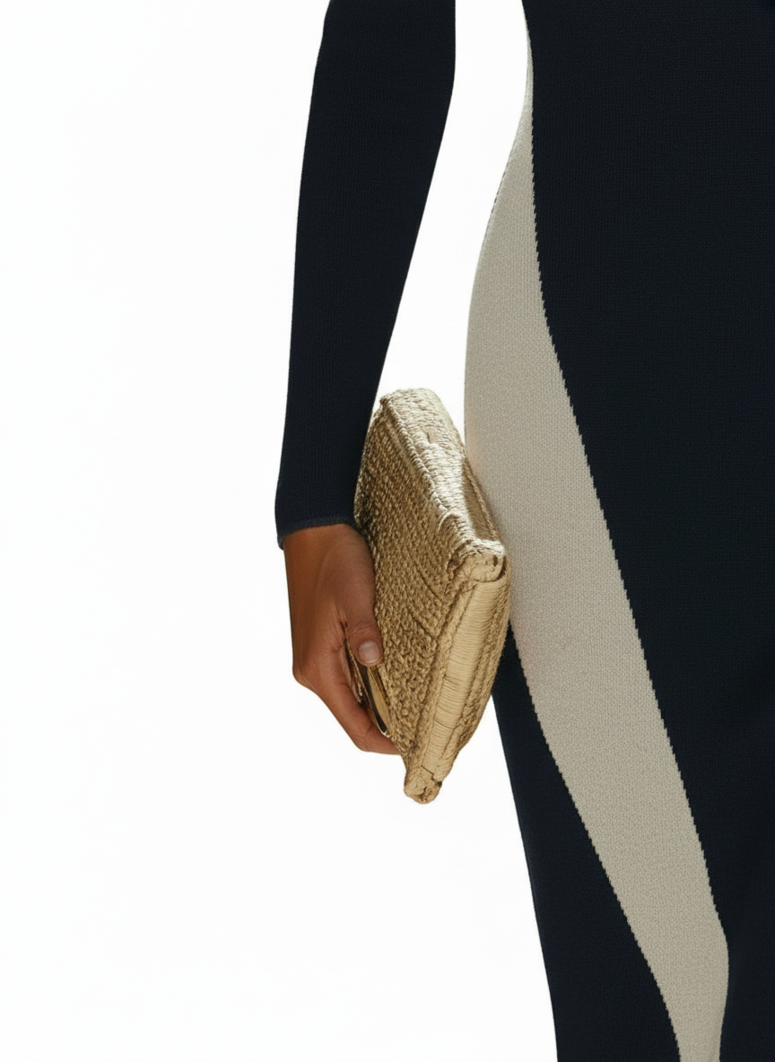 A study in architectural precision and modern femininity. This one-shoulder bodycon dress commands attention through contrast—bold monochrome blocking that sculpts and defines, while the asymmetric neckline adds an element of quiet drama.